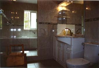 Von der 16 m langen Terrasse durchschreiten wir den berankten Torbogen an ihrem Ende und wenden uns nach links: hintereiner Oleander-Gruppe und einem weißen Hibiskus betreten wir einen großen, lichten Raum: das Gartenzimmer.